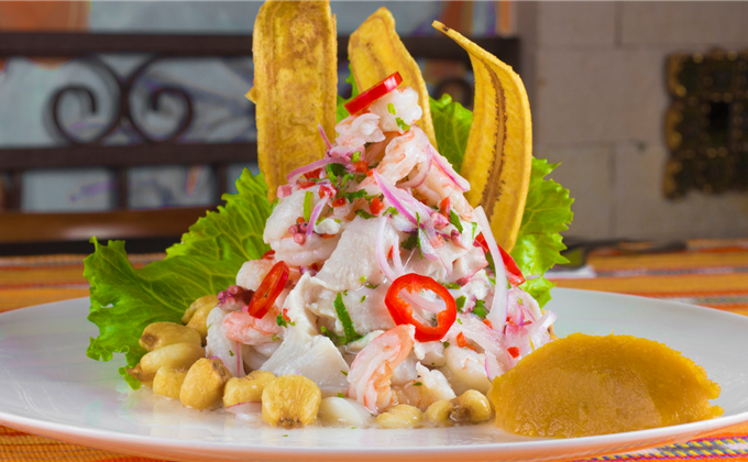 Bien conocemos aquellos trozos de pescado, cebolla y jugo de limón servidos con camotito y choclo. Dentro de las variedades del ceviche se encuentra el ceviche de concha negra, ceviche de camarón, de mariscos y platos derivados tales como el tiradito en salsa de rocoto, en salsa de ají y la reponedora leche de tigre.